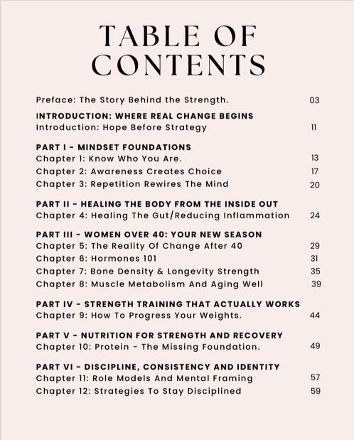 And it’s not a one-size-fits-all fitness plan.This is a compassionate, step-by-step 200 page master guide created to meet you exactly where you are — and support you as you rebuild strength, confidence, and trust in your body.Whether you’re starting again after a break, working through setbacks, or ready to train with more intention and understanding, this book offers a clear and grounded path forward. There’s no pressure to rush, no expectation to “push through,” and no assumption that your body should perform the same way it once did.Instead, this guide focuses on progress that feels safe, sustainable, and empowering. Inside, you’ll find practical guidance that respects real life — changing energy levels, busy schedules, past injuries, and the emotional side of movement. The approach is calm, structured, and encouraging, helping you build consistency without fear or overwhelm.This book isn’t about quick fixes or extreme rules.